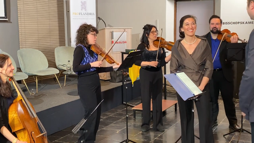 De muzikale omlijsting, georganiseerd door dhr Hugo Van Geet, bestaat uit Vlaamse klassieke muziek gebracht door het orkest Terra Nova Collective olv Vlad Weverbergh en met de sopraan Liesbeth Devos.